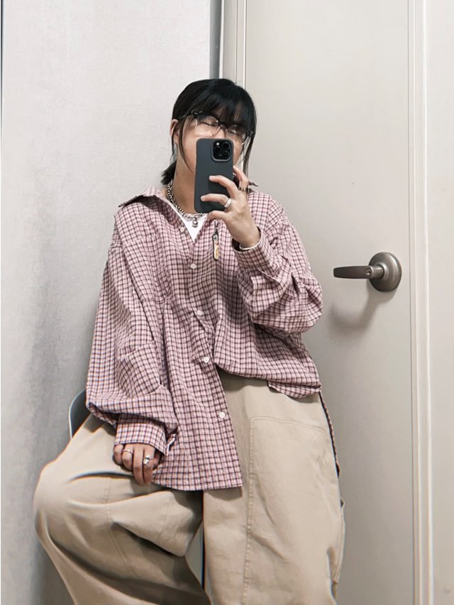 T2048 • 皺皺布輕薄格仔SHIRT