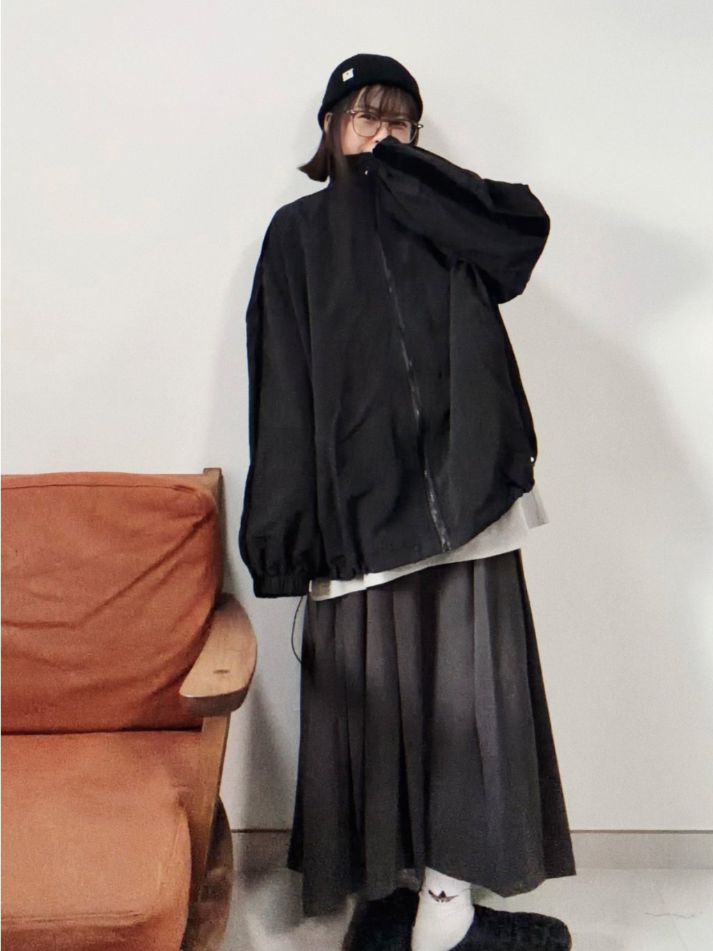 T2085 • 袖拼絲絨間風褸外套