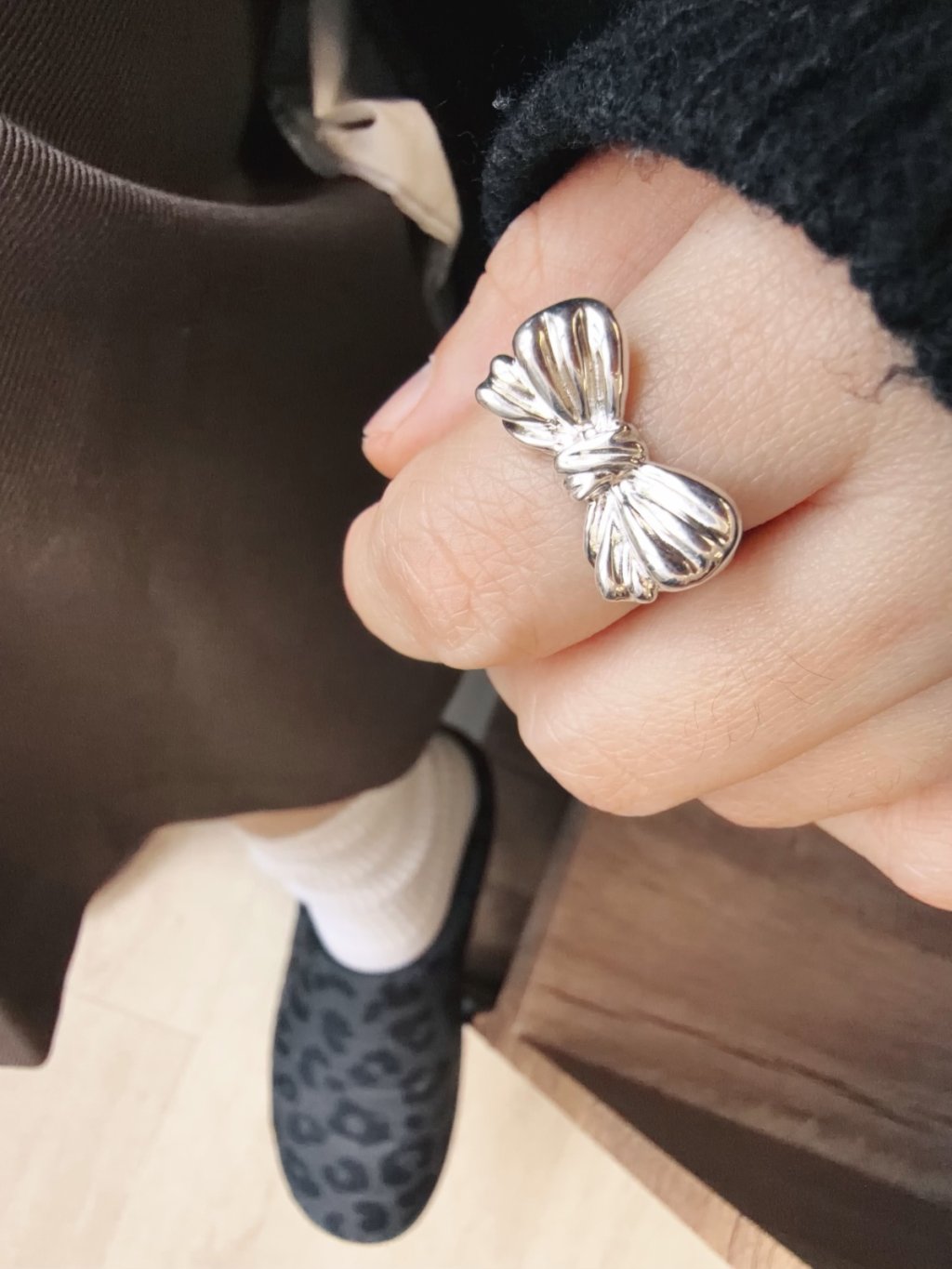 AR08 “ 925 SILVER 壓紋蝴蝶結開口戒指